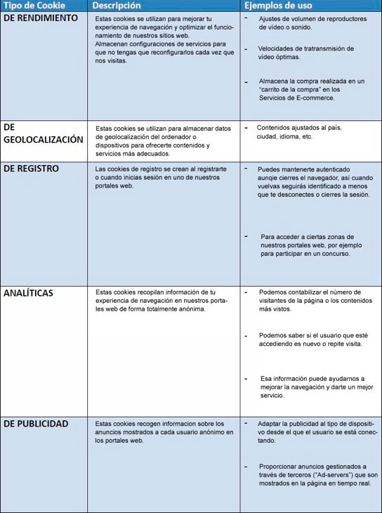 Tipos de Cookies que se utilizan en la Web